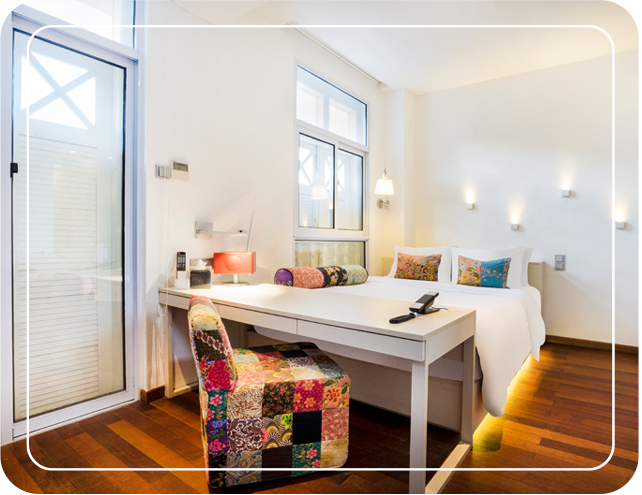 A room with a balcony to overlook the streets of Little India, a perfect way to spend your quiet afternoon with a cup of tea.