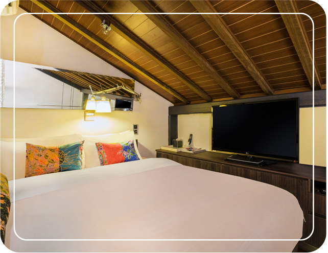 Loft room equipped with a queen-sized bed and necessities that can accommodate up to 2 guests.