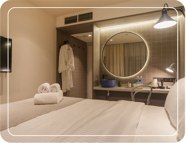 Room equipped with a queen-sized bed and necessities that can accommodate up to 2 guests.