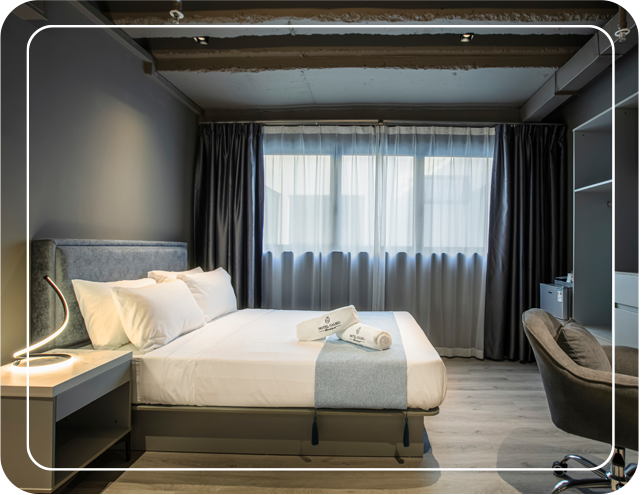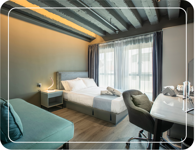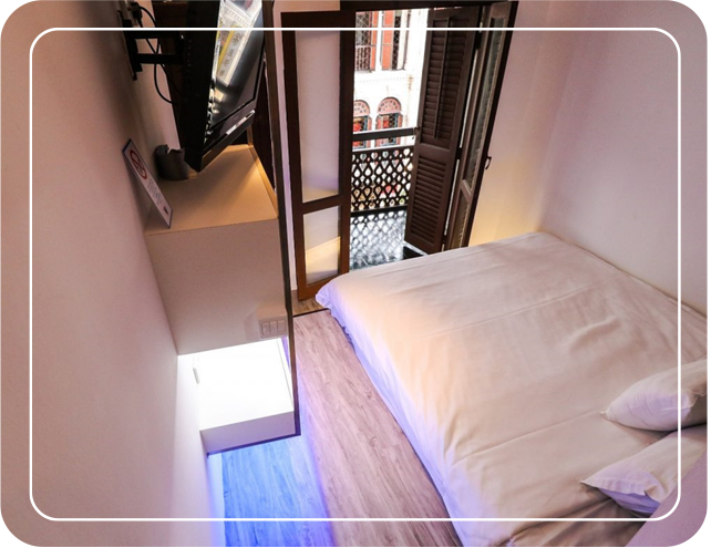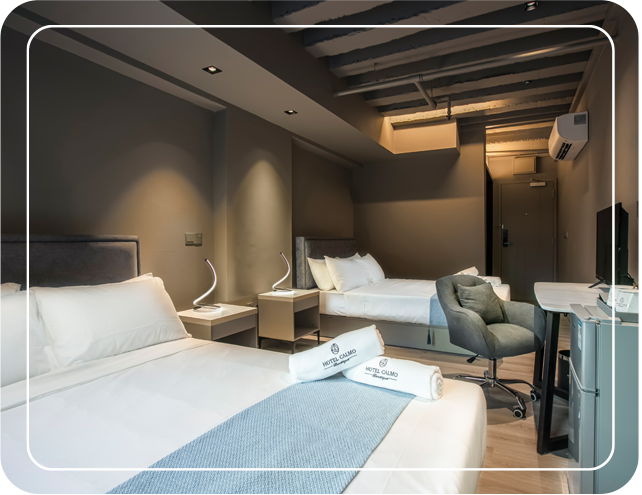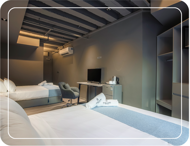 The Deluxe Quad Room can accommodate up to 4 guests with a queen-size bed and a double sofa bed.